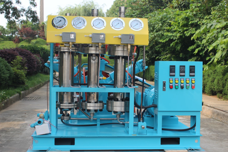 Stickstoffgas kann durch einen PSA-Generator oder eine Luftzerlegungsanlage erzeugt und dann auf 15-30 MPa verdichtet werden, um Hochdruck-Stickstoffzylinder zu füllen. Im Allgemeinen kann eine Hochdruckflasche mit etwa 10 Kubikmetern Stickstoff gefüllt werden. Der Stickstoffkompressor hat einen Eingangsdruck von <145 psi, einen Ausgangsdruck von bis zu 4350 psi, eine Kapazität von 105 cfm bis 3500 cfm.